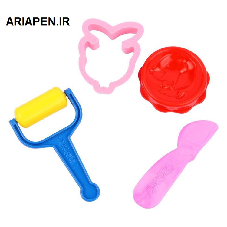 اقلام همراه: 5 رنگ خمیر 22 گرمي، 1 عدد قالب، غلطك، کاردک، روشور