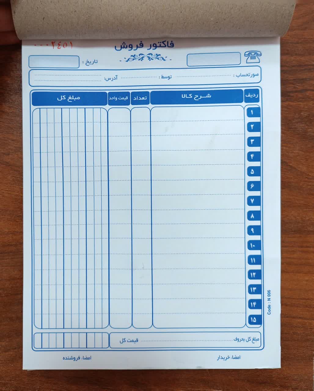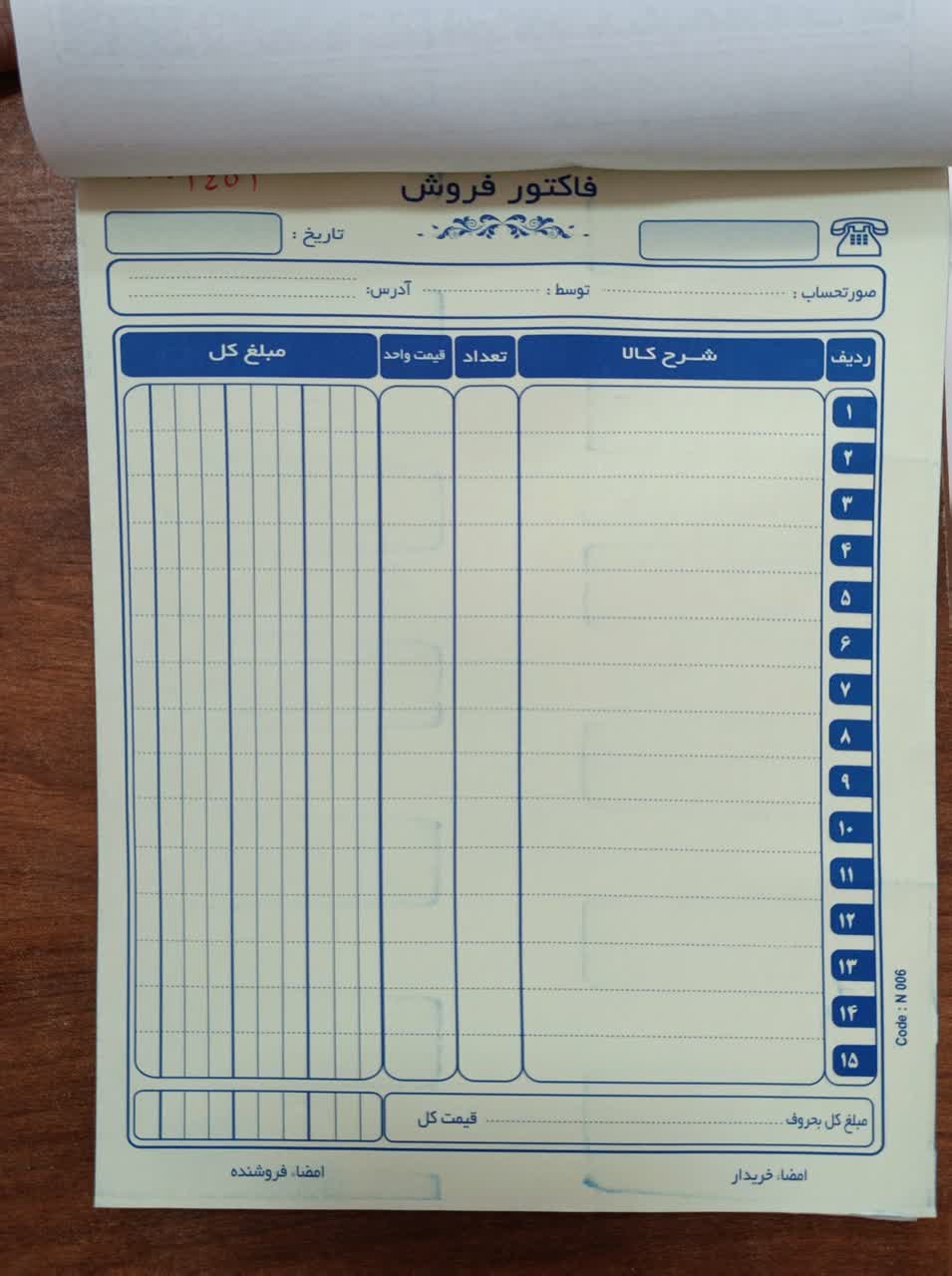خرید فاکتور کاربن لس NCR دارای شماره فاکتور | آریاپن