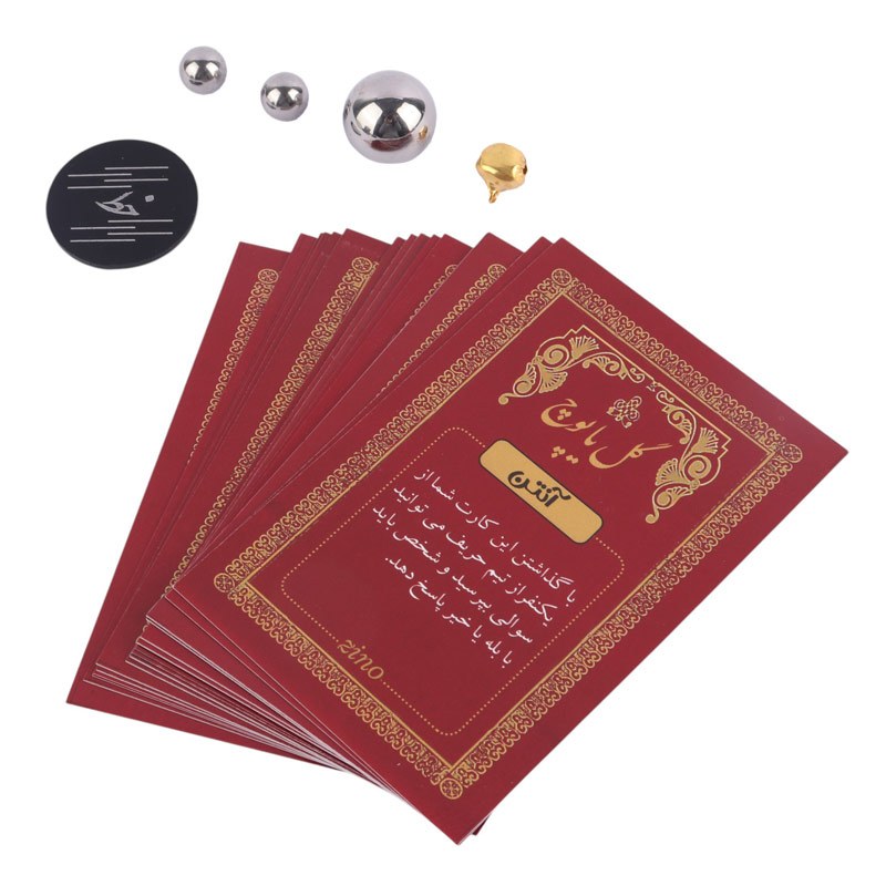 17 کارت بازی، گوی صدادار، گوی کوچک، گوی بزرگ و ژتون شیر یا خط